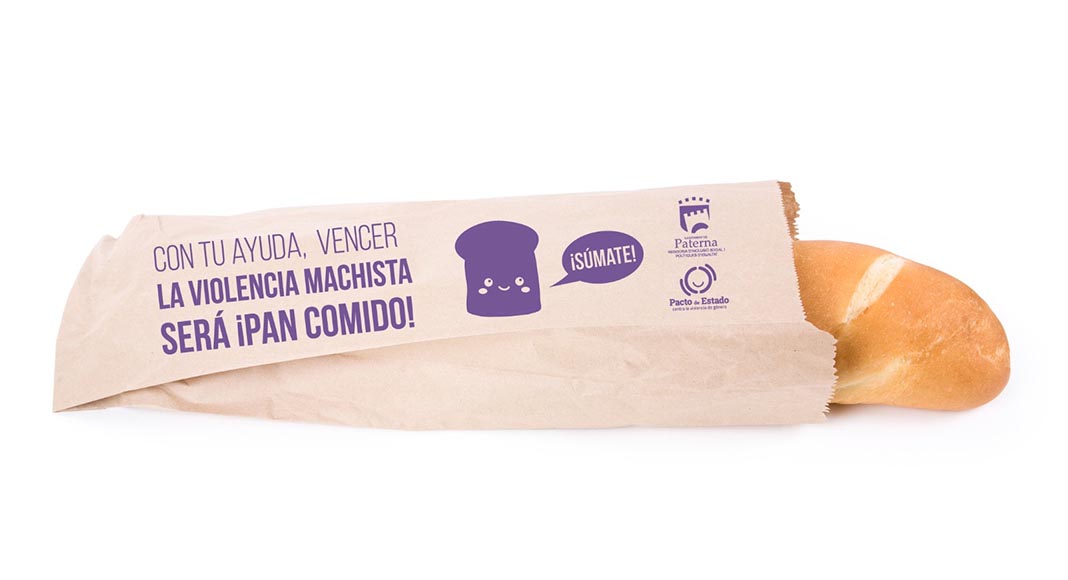 El Ayuntamiento de Paterna está repartiendo, desde hoy, en los hornos y panaderías del municipio,  50.000 bolsas de papel con el lema “Con tu ayuda, vencer la violencia machista será ¡pan comido!”, de forma que los paterneros que vayan a comprar el pan se lo lleven en estas bolsas que promueven la lucha contra la violencia de género.